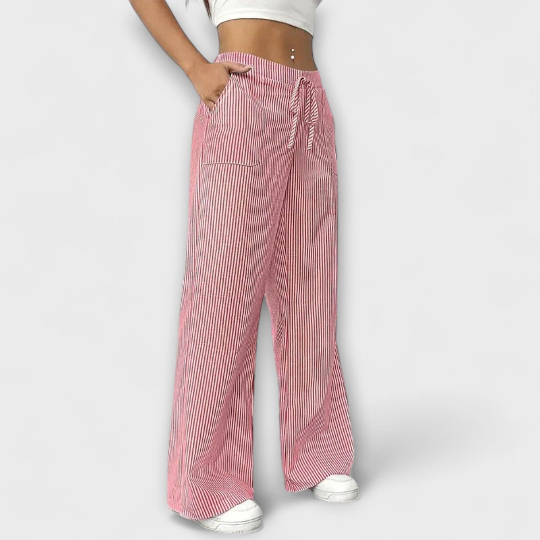 Se elastickým pasem a zavazováním pro osobní přizpůsobení a lehkým, prodyšným materiálem, který tě udrží chladnou po celý den, jsou tyto kalhoty ideální jak pro odpočinek, tak pro stylové výlety.