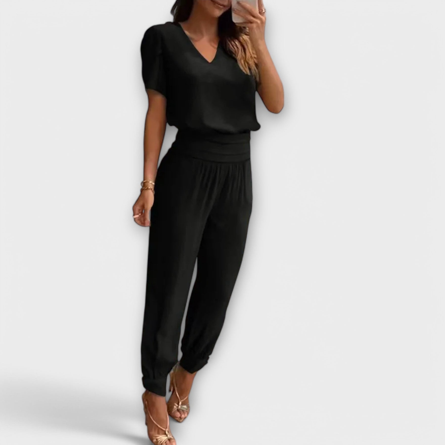 Set Irmelin – Elegantní set s topem a kalhotami kombinuje moderní design s nejvyšším komfortem nošení. Lichotivý střih zdůrazňuje postavu, zatímco kvalitní materiály zajišťují příjemný zážitek z nošení. Ať už na uvolněnou procházku městem nebo na formální schůzku – tento set je ideální volbou pro všestranné vzhledy.