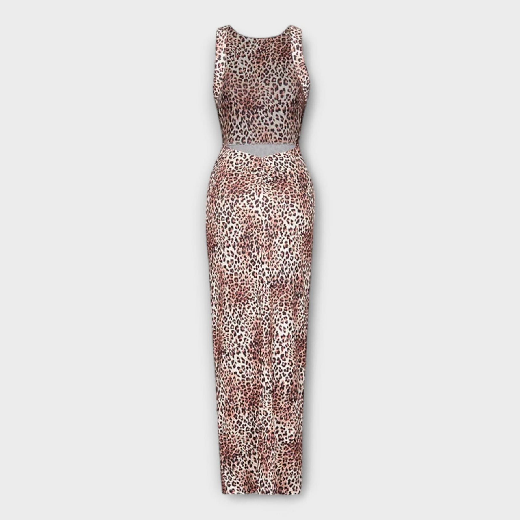 Della - Maxi šaty s leopardím potiskem a odhaleným zadním dílem