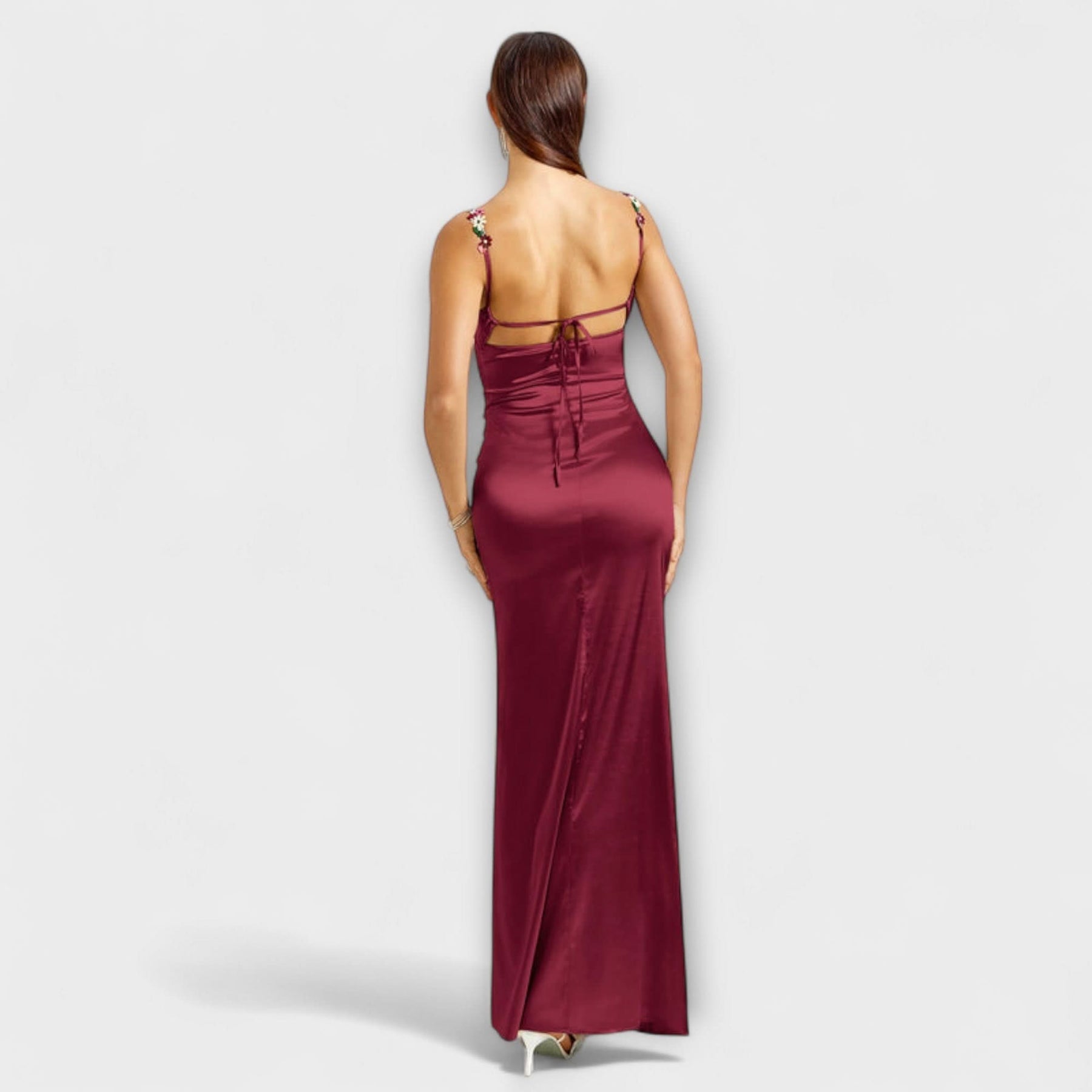 Eira - Ozdobené saténové šaty s šněrováním na zádech