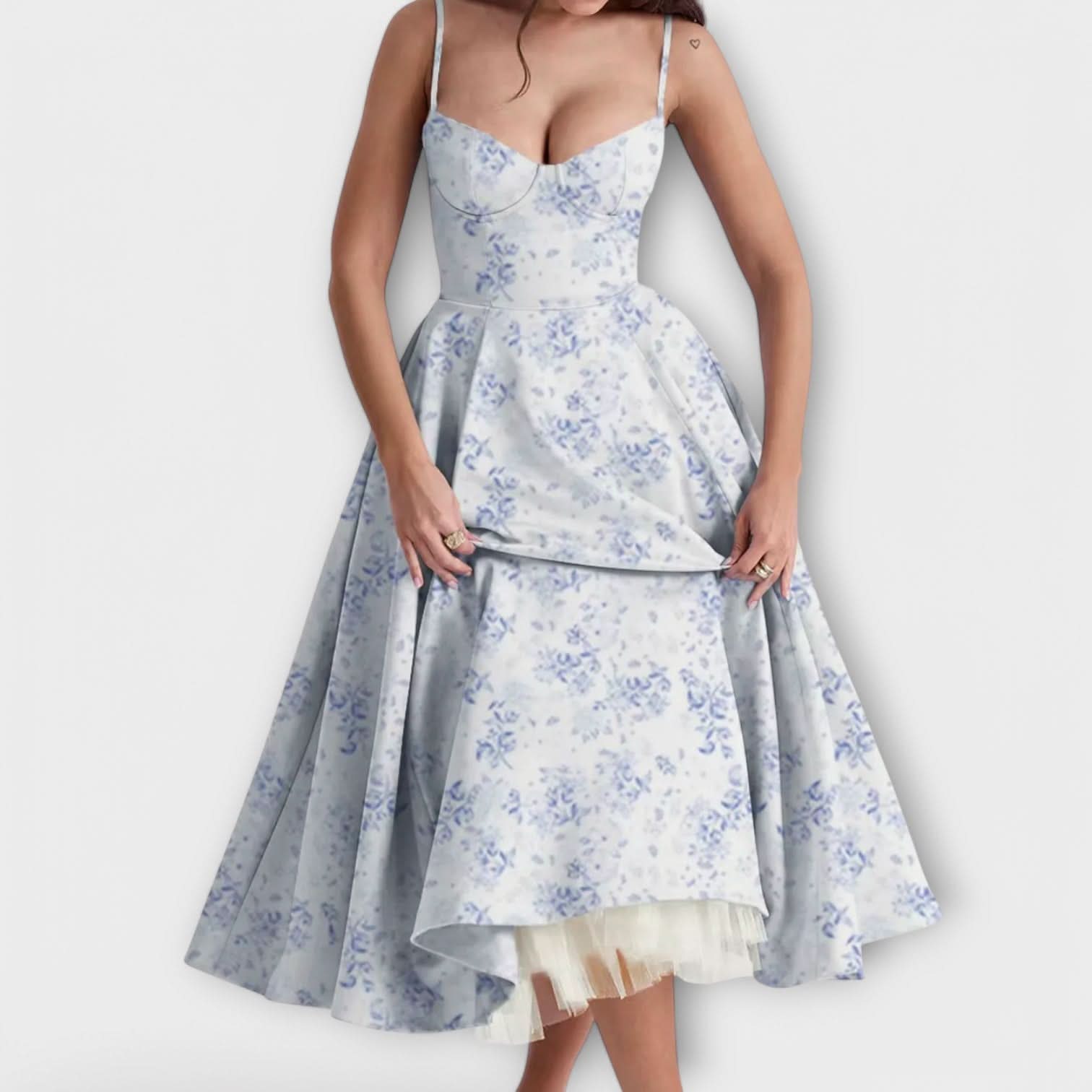 Jemný odstín modré a úzká ramínka vytvářejí neodolatelně lehký vzhled, ideální pro letní příležitosti. Ať už na romantické svatbě, zahradní párty nebo stylovém výletě – šaty Mélie vás v každé situaci rozzáří.